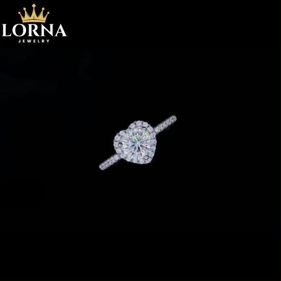 1Ct Moissanite Heart Halo Round Pave Sterling Silver Engagement Ring