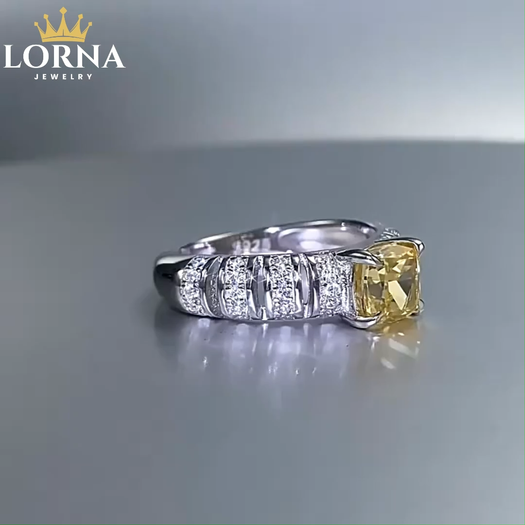 1Ct Luxury Yellow Cushion Gemstone Ring White Accent Band